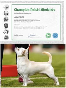 * JUBILATION PC (IT) – złoto, Zw. Młodzieży, CACIB Junior, Best Junior i BOB. Ukończony Mł.Ch.PL