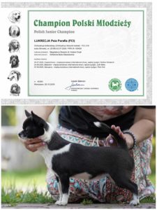 * LUKRECJA Psia Parafia FCI – złoto, Zw. Młodzieży i CACIB Junior. Ukończony Mł.Ch.PL